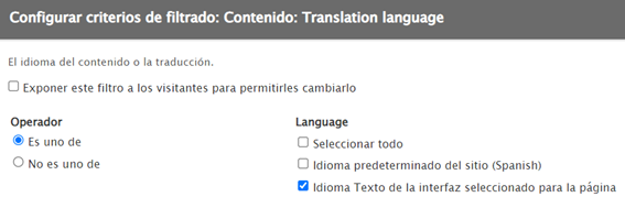Y esta es el modo de hacer un filtrado de idioma en vistas de Drupal.